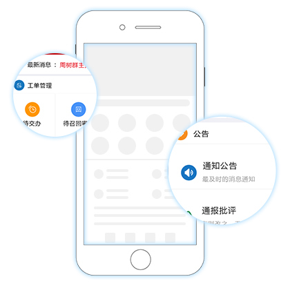 工作人员因公外出时候不能及时的反馈信息从而影响到工单事件的处理时效。管理中心APP应运而生,让工作人员可以随时随地在手机上进行业务的操作功能。